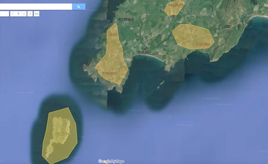 Arddlas, Derlwyn, Ty’n Pwll, Ty Crydd, Llyn gelod, Ystum, Cae Du,